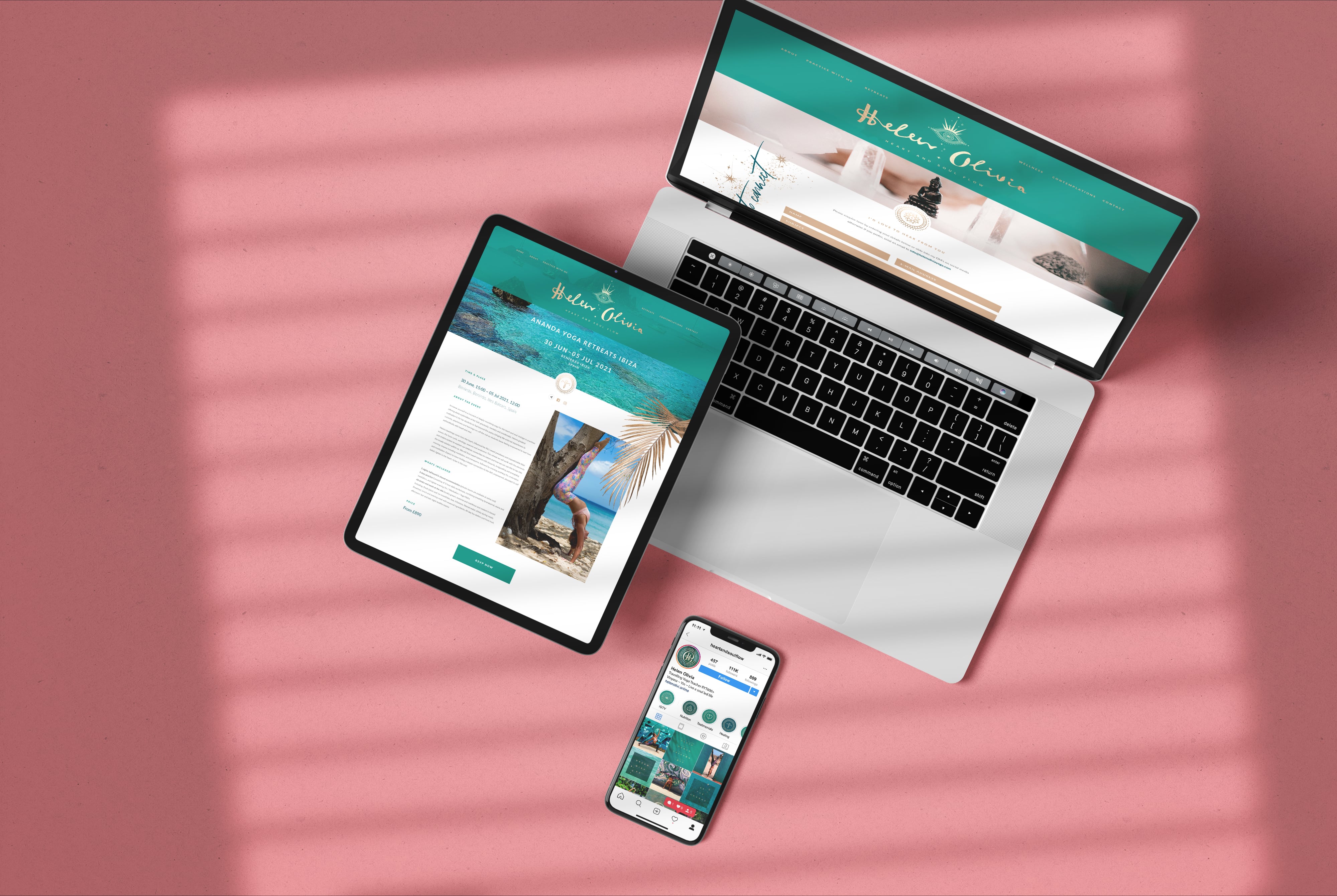 Soulful, spiritual and emotive are words that describe Helen and her yoga teachings. She wanted to brand heart and soul flow as it lends itself to how she teaches yoga, but at the same time wants to branch out into other wellness fields, meditation and female empowerment coaching. The end result is a heart and soul goddess 'intuitive eye' illustration crafted together with some custom flow typography in her name and voilà - The Helen Oliva brand was born.