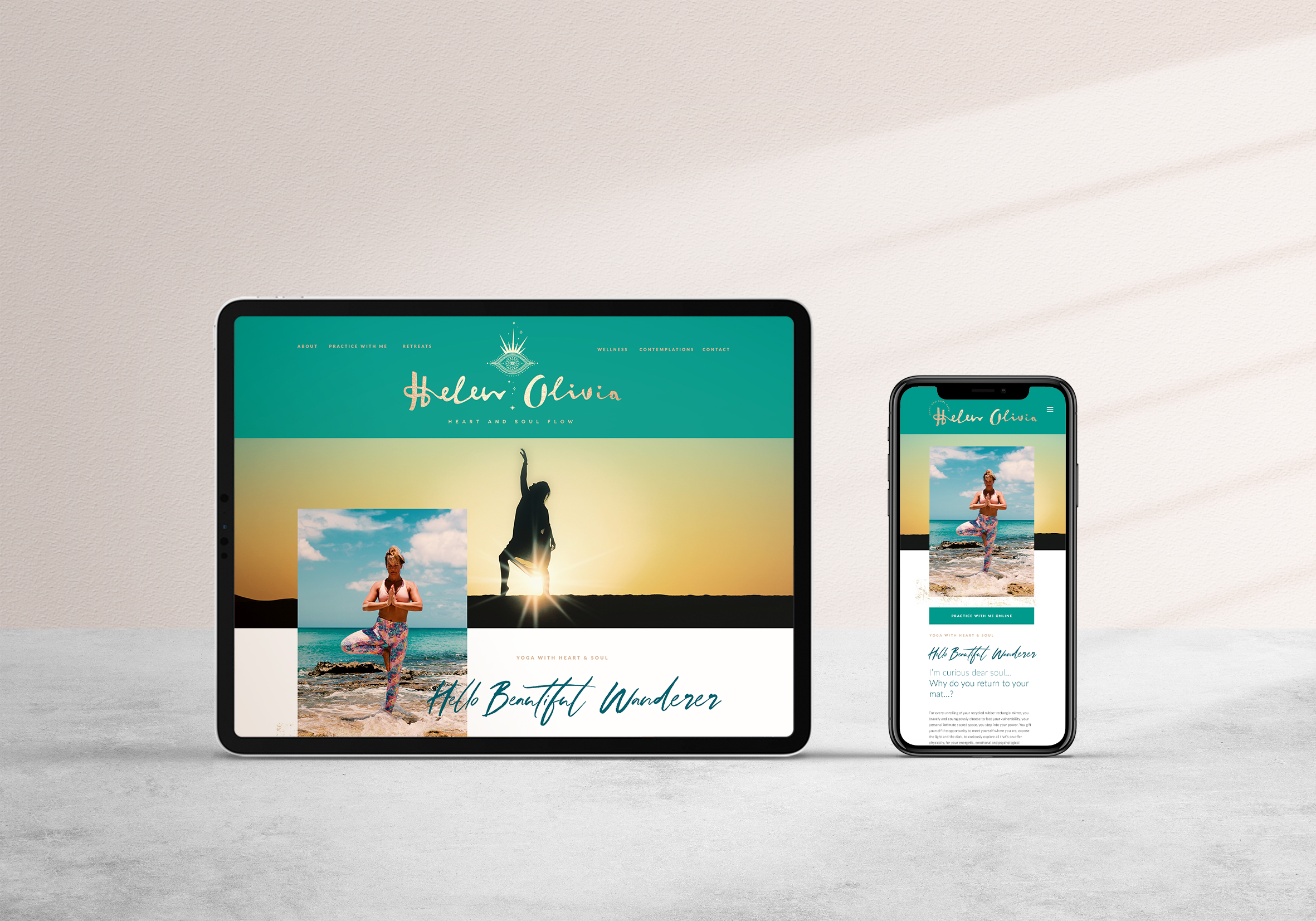 Soulful, spiritual and emotive are words that describe Helen and her yoga teachings. She wanted to brand heart and soul flow as it lends itself to how she teaches yoga, but at the same time wants to branch out into other wellness fields, meditation and female empowerment coaching. The end result is a heart and soul goddess 'intuitive eye' illustration crafted together with some custom flow typography in her name and voilà - The Helen Oliva brand was born.